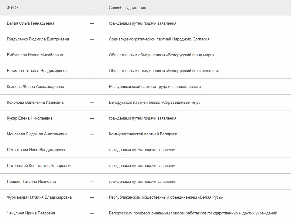 Состав окружной избирательной комиссии Светлогорского избирательного округа № 46 по выборам депутата Палаты представителей Национального собрания Республики Беларусь седьмого созыва: