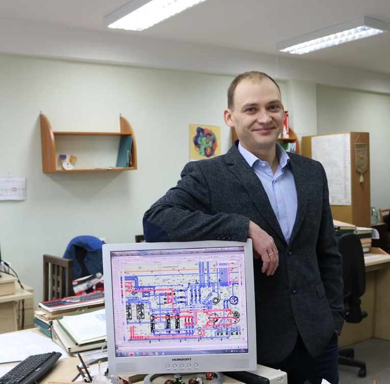 Реализация инвестиционных и проектов по программе энергосбережения в ОАО «СветлогорскХимволокно» начинается с разработки проекта специалистами проектно-конструкторского отдела. Эту работу возглавляет главный инженер проекта — начальник бюро отопления и вентиляции ПКО Антон ХАРЬКОВЕНКО.