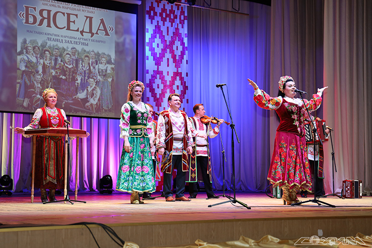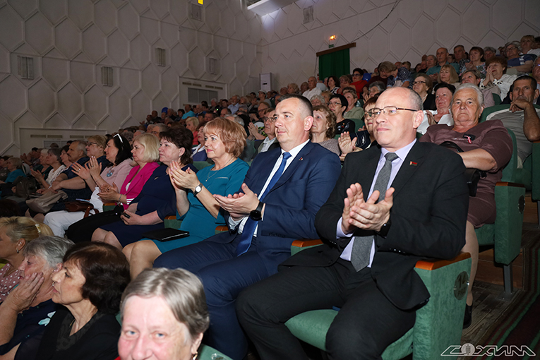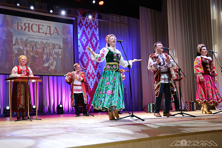 Финальный аккордом церемонии чествования стал душевный концерт заслуженного коллектива Республики Беларусь ансамбля народной музыки «Бяседа». Ветераны-химики не скупились на овации и аплодисменты, артисты пели на бис: «І каб было вам на ўсім вяку лёгка на сэрцы, цяжка ў кашальку…»
