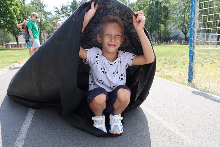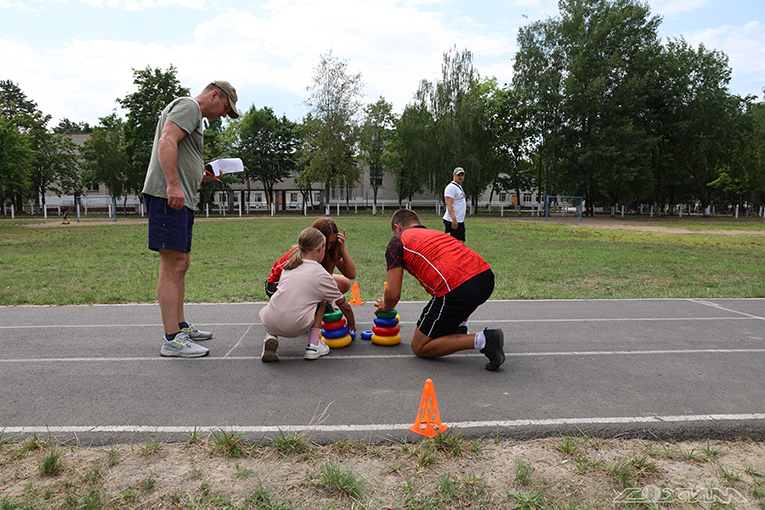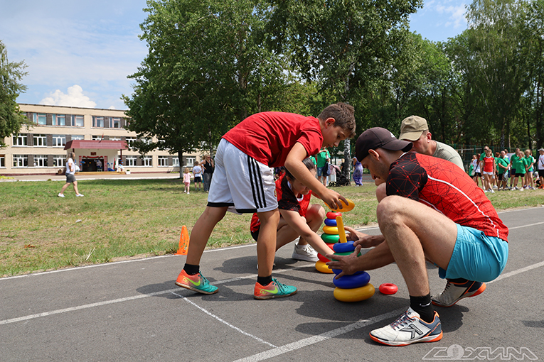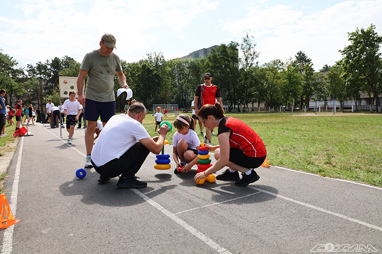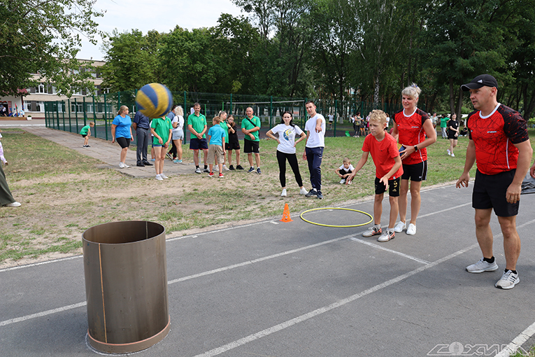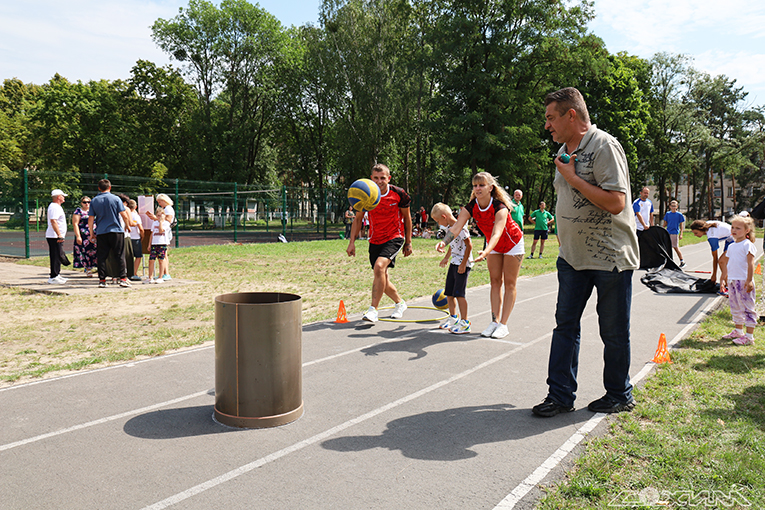 И вот дан старт: проползти через туннель, забросить мяч в бочку, попасть дротиком в воздушный шарик, собрать пирамидку, пробежать по скамье, сбить кегли, провести мяч – казалось бы, простые незатейливые конкурсы, а сколько эмоций вызывали они у участников. Трудно было сказать, кто справлялся лучше: папы или мамы, дети или их родители. Каждая маленькая удача, попадание в цель с первого раза мотивировали, подстёгивали бежать быстрее, бросать сильнее, идти до конца.