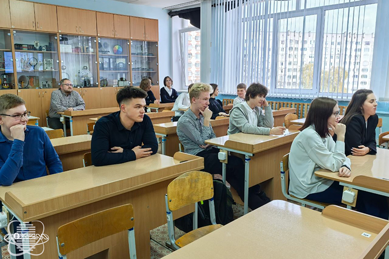 В гости к школьникам приехали заместитель генерального директора Общества Денис Науменков, председатель профсоюзного комитета Мария Пинчук и специалист по работе с молодежью Елена Кохно.