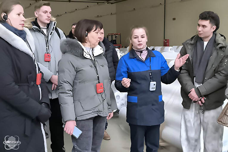 Первым в маршрутном листе значился цех нетканых материалов. Участникам форума представилась возможность познакомиться с разнообразием выпускаемой продукции и спектром ее применения. В роли экскурсовода выступил Никита Москальчук (начальник смены, ЦНМ).