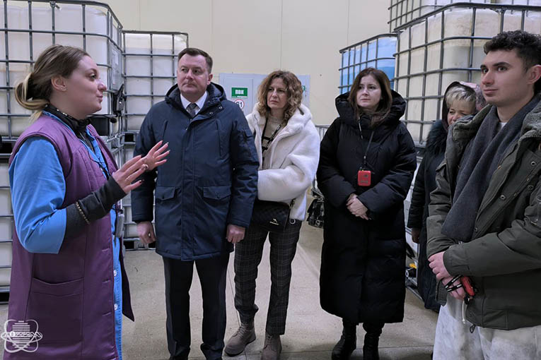Вторым местом посещения стала новая линия по производству трехслойной полиэтиленовой пленки, введенная в эксплуатацию 25 января 2024 года. Ведущий инженер-технолог цеха Дарья Титкова рассказала гостям о свойствах трехслойной пленки и ее применении.