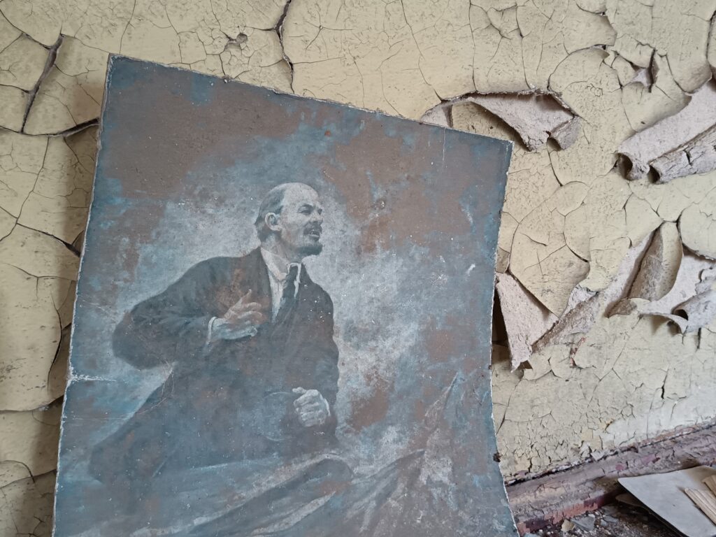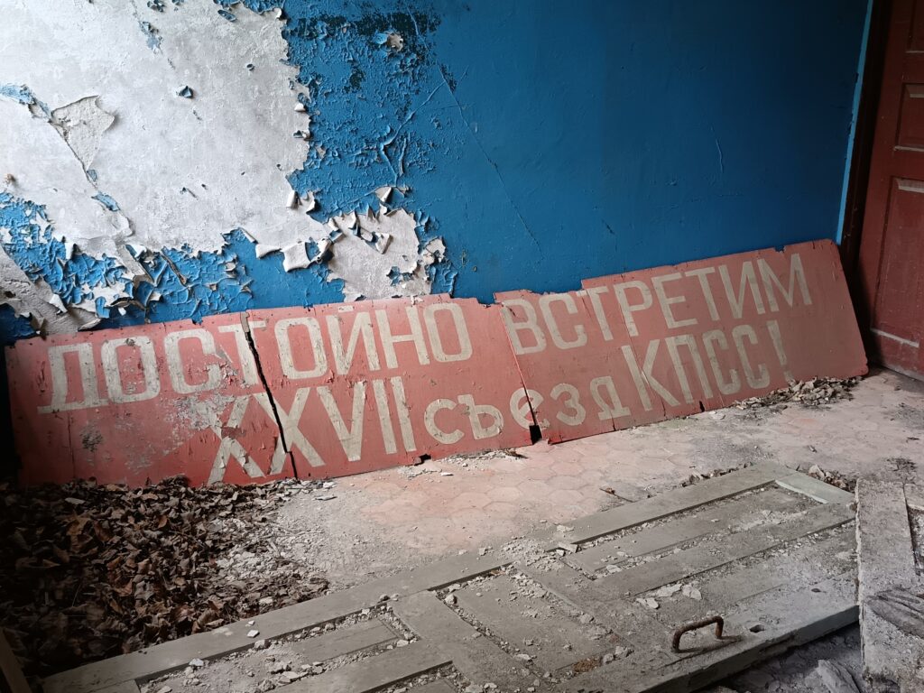 В амбулатории бывшего поселения Погонное на полу, на столах валяются, запыленные карты беременных сельчанок: год рождения, срок беременности… Тут же весы, на которых взвешивали малышей, смотровое кресло, кушетки. В классах школы стоят парты, на школьных досках туристы мелом дают о себе знать.  Больше никто не сядет за эти парты, в комнатках детского сада ржавеют детские горшки, транспарант «достойно встретим 27 съезд КПСС» покрыт слоем 39-летней пыли, время стирает надпись на стенде «права депутата», полы провалены, печи разрушены, с потолков свисает обрешётка… И это тоже исчезнет под слоем времени.