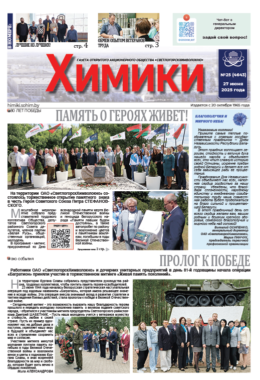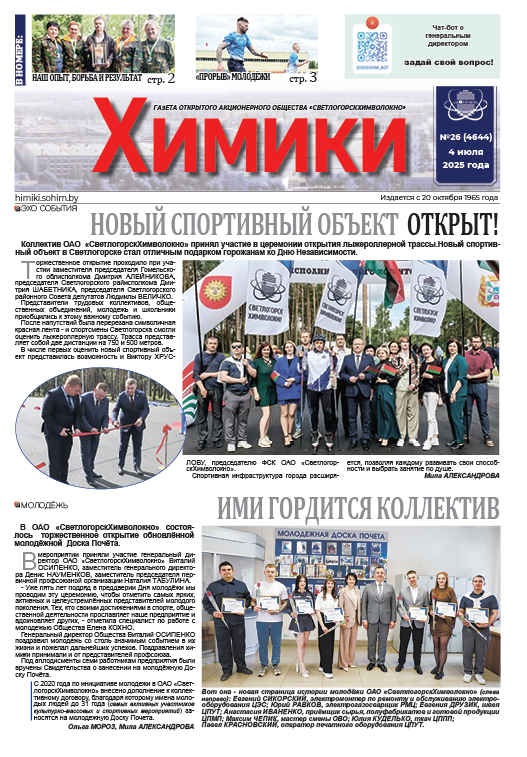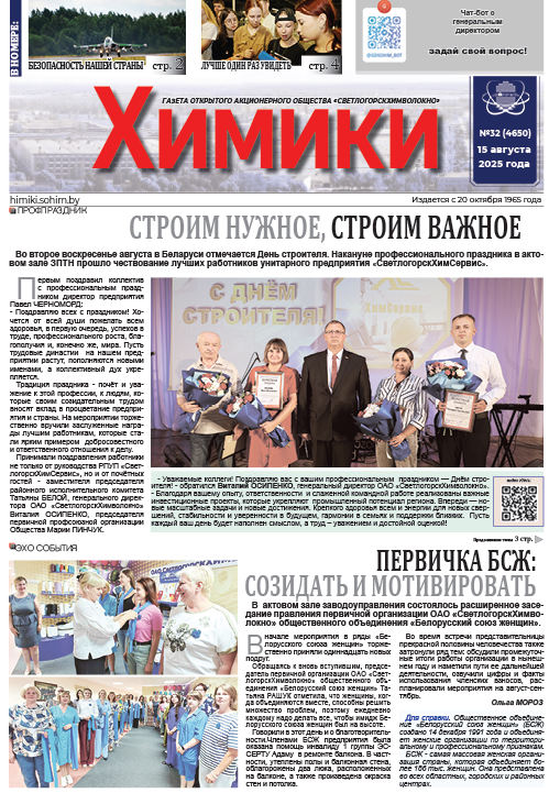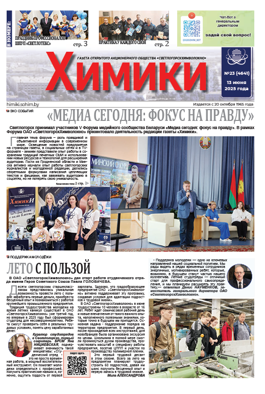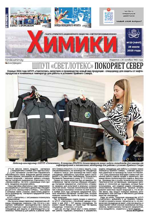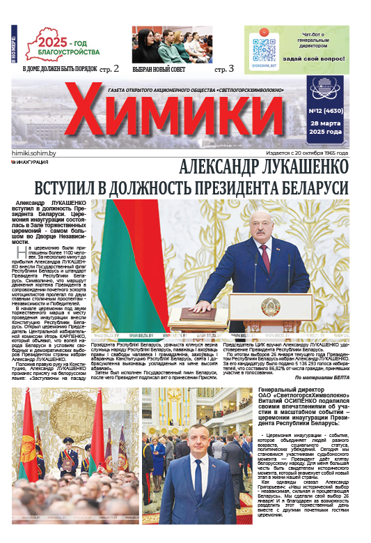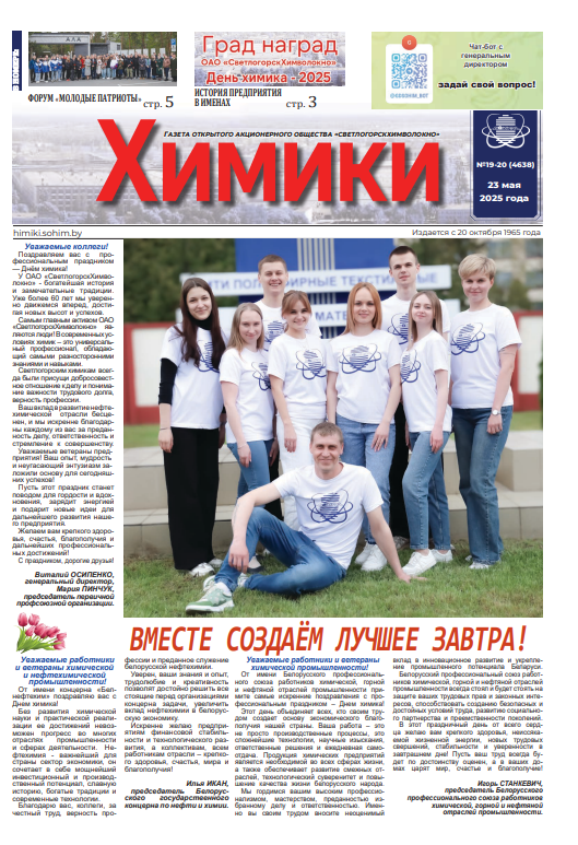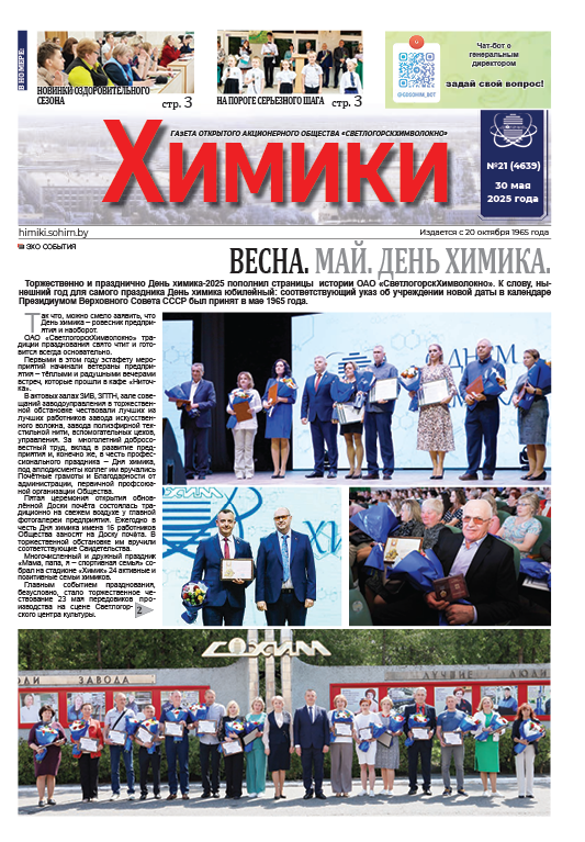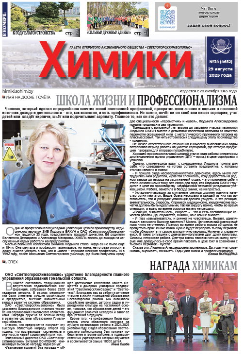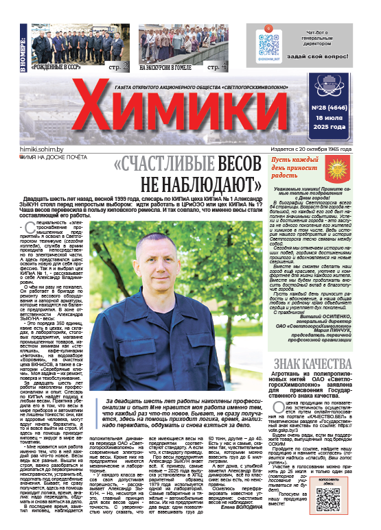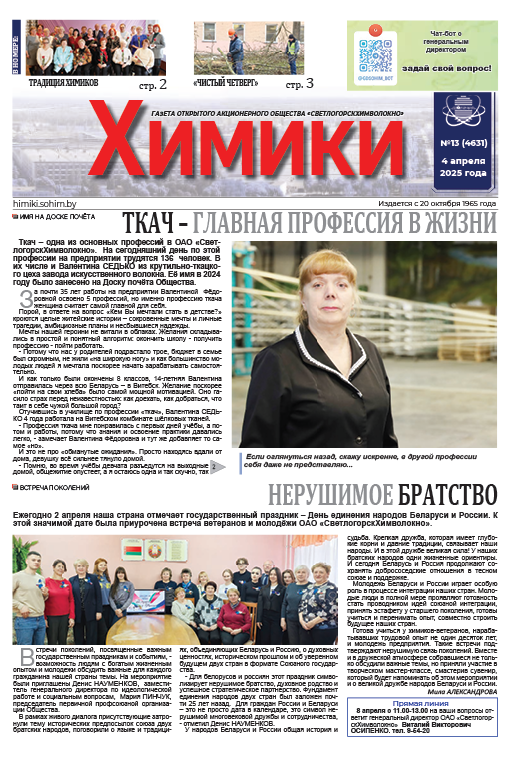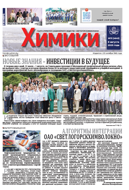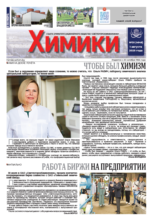 Газета Открытого Акционерного Общества «СветлогорскХимволокно»