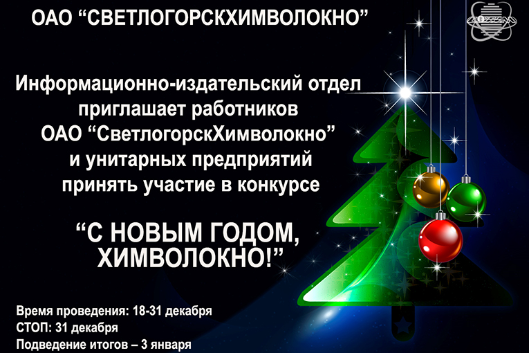 А вы знали, что «Новый год» — чемпион среди ответов на вопрос: «Какой ваш любимый праздник?» Никогда не оставляем без внимания это замечательное торжество и мы. Информационно-издательский отдел приглашает принять участие в конкурсе «С Новым годом, Химволокно!»